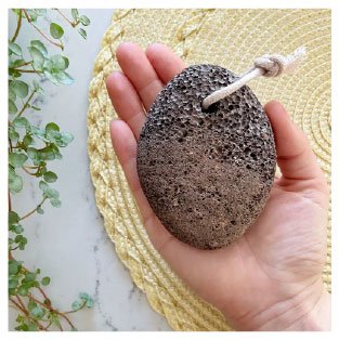 Pumice stone is commonly used for exfoliating rough and calloused skin, particularly on the feet and elbows, leaving them smooth and soft